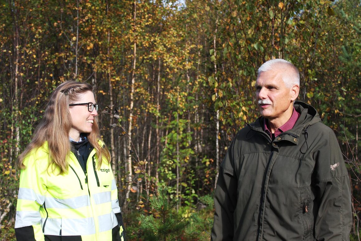 Bildtext: Christin Jonasson och Örjan Spansk på plats vid kompensationsområdet.